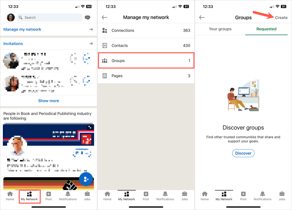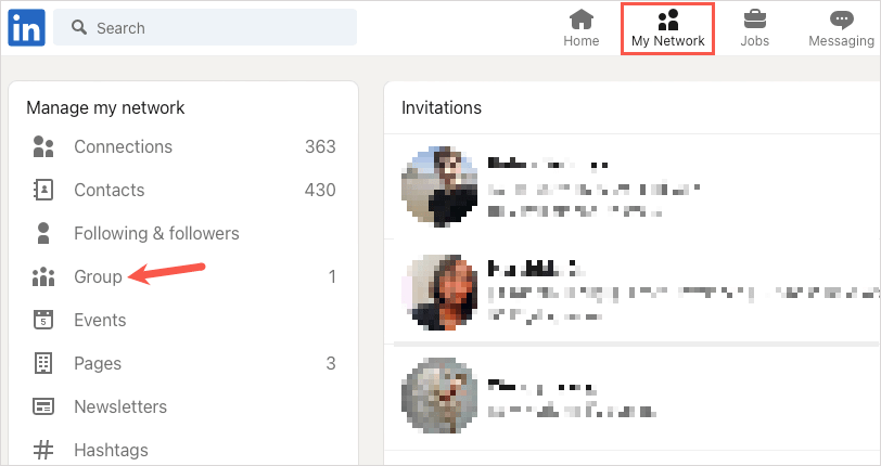 - If you don’t see Groups in that spot, choose the My Network tab. Then, select Group below Manage My Network on the left.