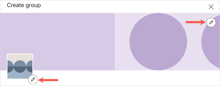Logo and cover image (optional): Select the Edit icon (pencil) next to the logo image on the left or cover photo on the top right to add one, the other, or both. This can help your members distinguish your group at a glance.