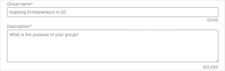 Description (required): Enter a description for the group which can be up to 2,000 characters long. Make this descriptive enough that your target audience and potential new members understand the purpose of the group.