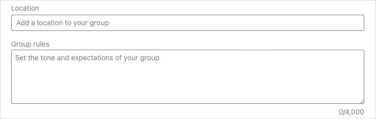 Group rules (optional): Consider including any regulations, expectations, or rules you want members to abide by. You can use up to 4,000 characters for the group rules.