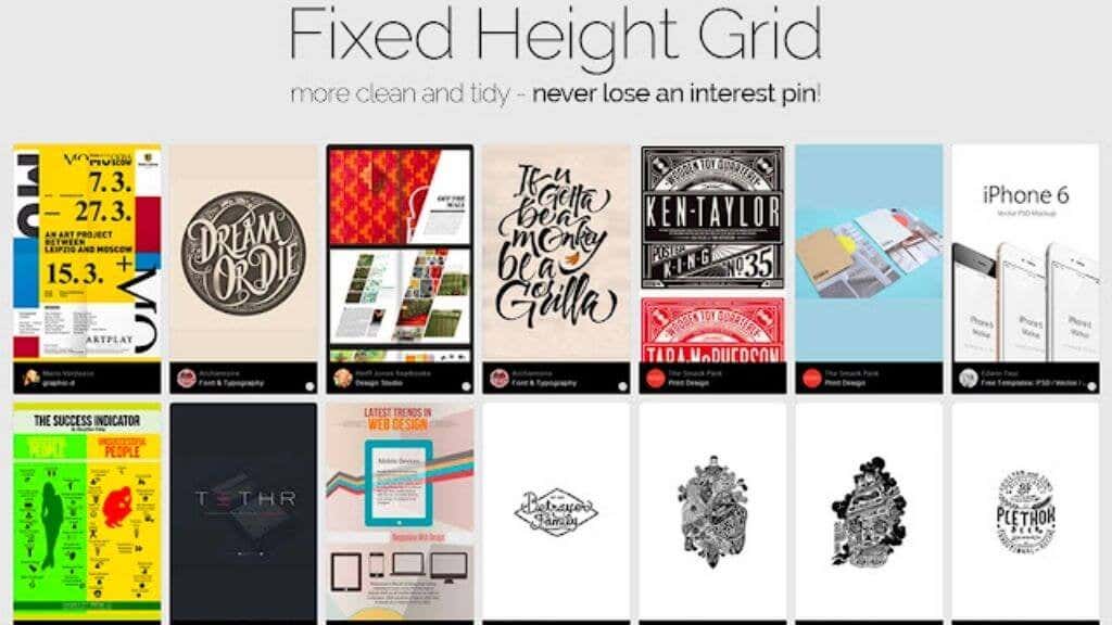 With this extension installed, Pinterest Enhanced will display all images with a fixed height, creating a perfectly-organized grid of images. You’ll only see pin information when you hover your mouse over each image. It also makes it easy to download the full-size version of images and search for their sources online.