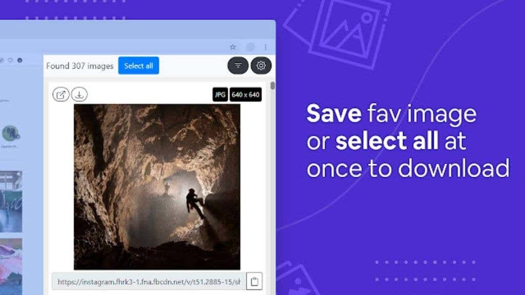 Image Downloader is an extension that works with multiple websites, including Instagram, Facebook, Twitter, and Pinterest. The extension shows you thumbnails for every image found on the web page, even ones that are obscured. You can quickly make a selection of images you want to download or simply batch download everything. It’s way faster than performing a right-click on every image to download it.
