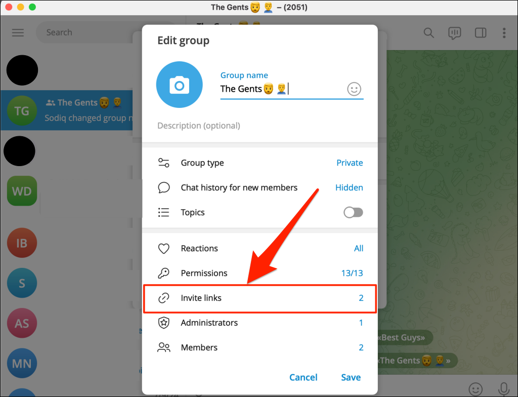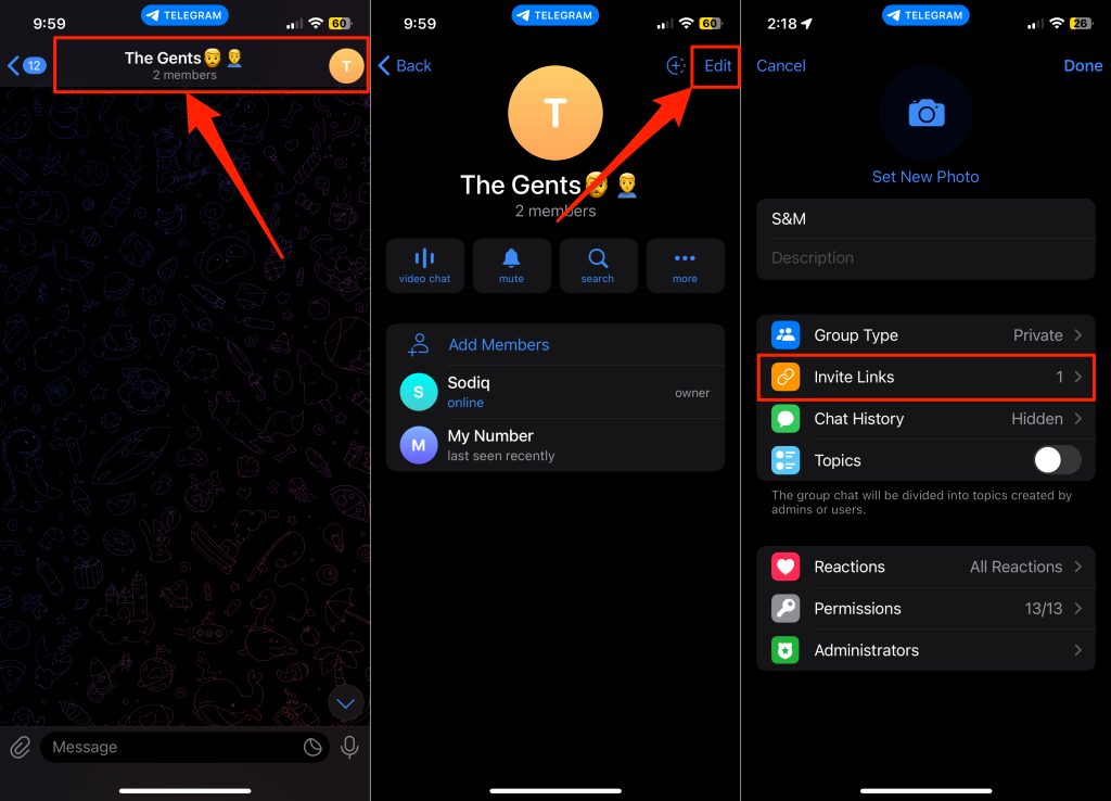 Open Telegram on your iPhone or iPad and follow these steps to revoke a group link.