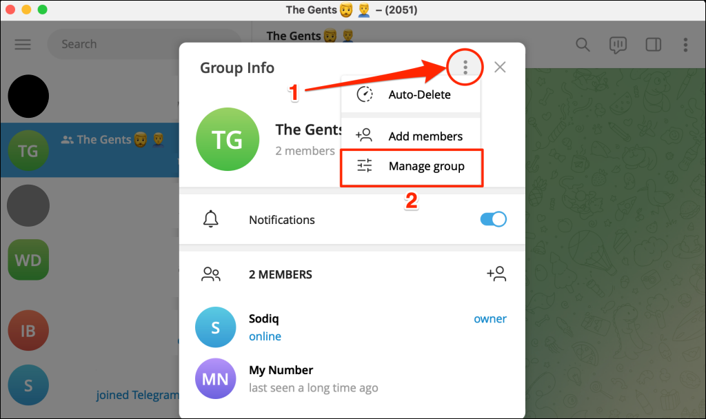Open the group in the Telegram app on your iPhone or iPad and follow the steps.
