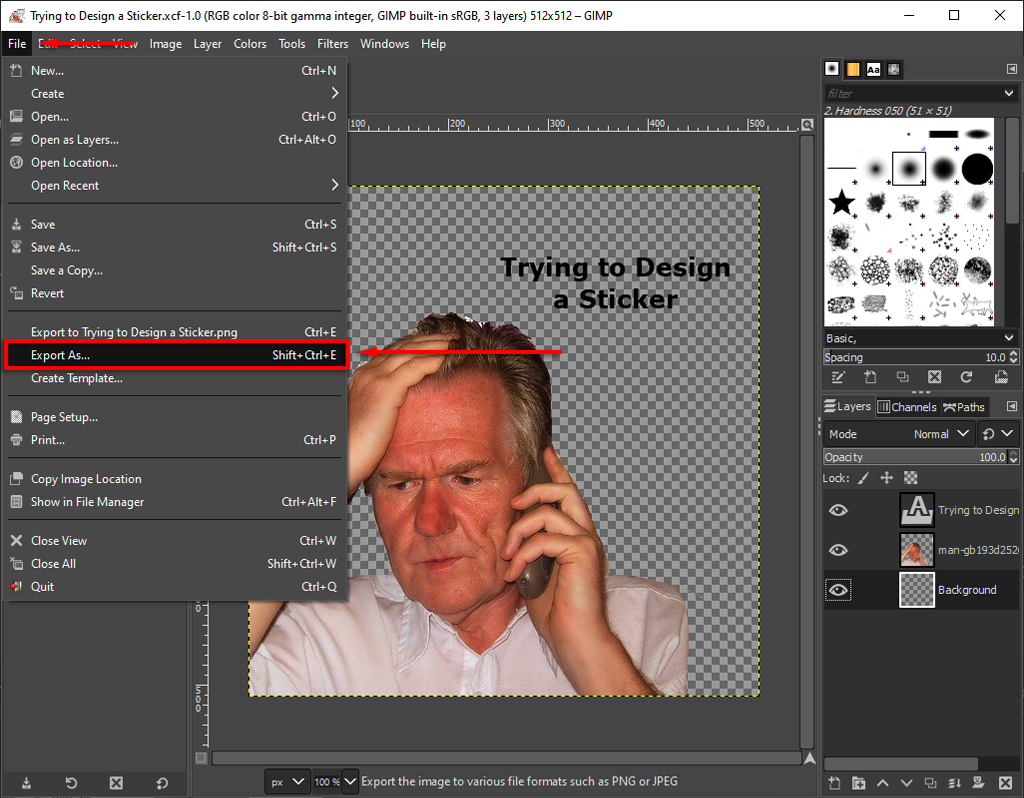 Several image editing applications will allow you to create Telegram stickers, including Adobe Photoshop (paid), GIMP (free), and SVG-edit (web-based and free). For this tutorial, we’ll use GIMP.