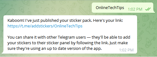 - Finally, add a name that people can find your sticker pack by and you’re done. The URL by which you can share the Telegram sticker pack will include that name.