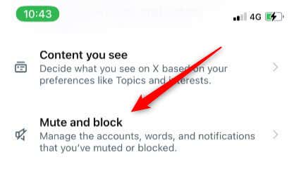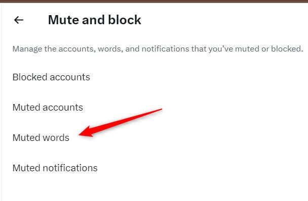 - You’ll see a few mute and block options, but you want to select Muted words here.