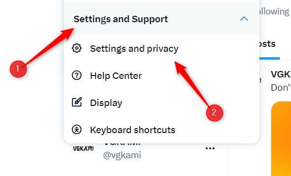 - Click Settings and Support to expand a menu with a few relevant options. Here, select Settings and privacy.
