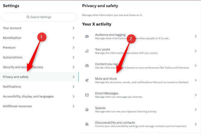 - In the left-hand pane, click Privacy and safety, then select Mute and Block in the Privacy and safety window.