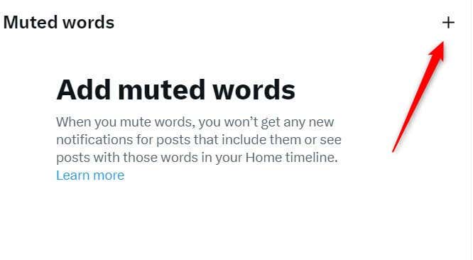 - You’ll see a brief explanation of what happens when you mute words. Click the plus icon in the top-right corner.