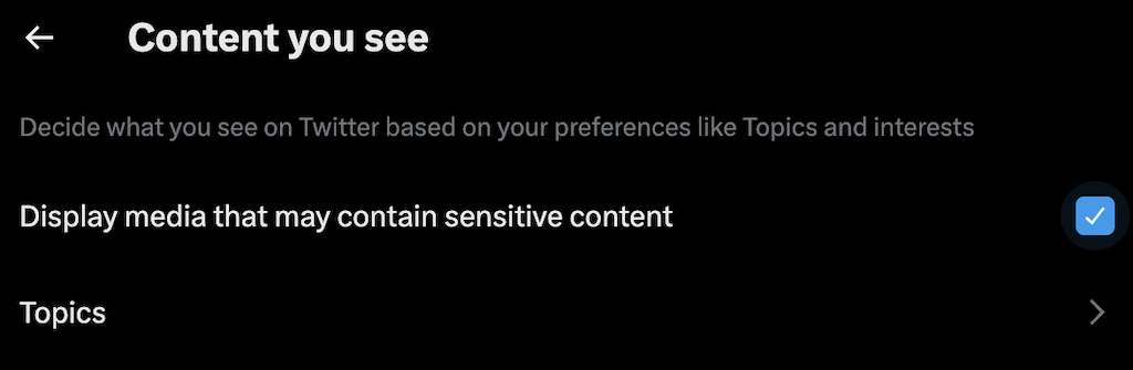 You’ll need to go back to those Twitter settings and make sure you have the Display media that may contain sensitive content option disabled and the Hide Sensitive Content option enabled to reverse the changes.