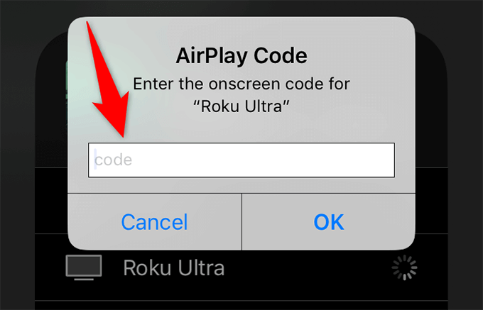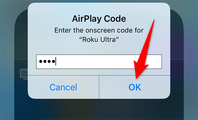 - An AirPlay Passcode should appear on your Roku. Enter this code on your iPhone or iPad and tap OK.