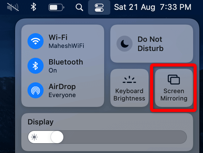- Select the Control Center icon in your Mac’s menu bar and choose Screen Mirroring.