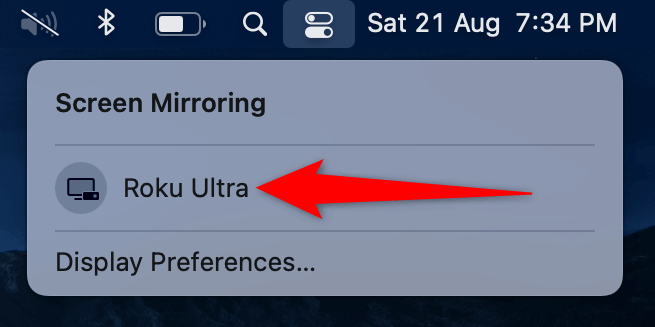 - To stop mirroring your Mac’s screen, select the mirroring icon in your Mac’s menu bar and choose your Roku device.