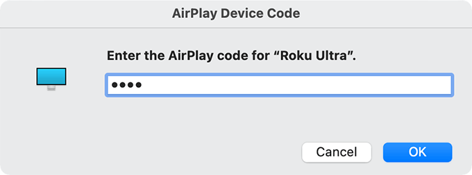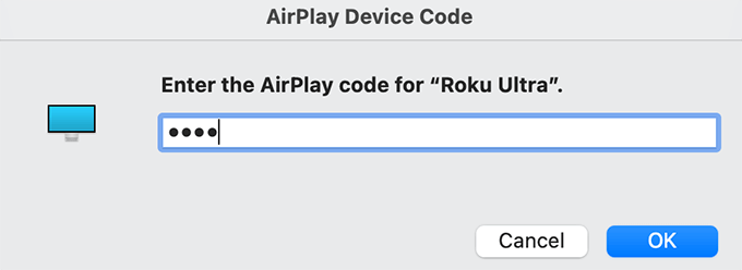 - Note the passcode from your Roku and enter it in the prompt on your Mac. Select OK.