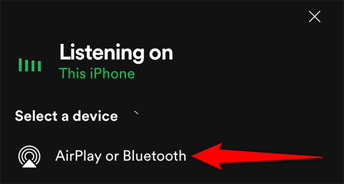 - Select AirPlay or Bluetooth on the Listening on screen.