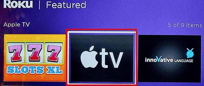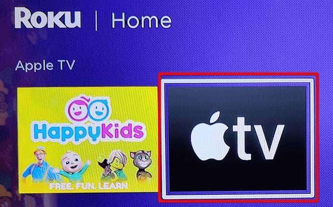 - Launch the newly installed Apple TV channel by selecting Home and then Apple TV on Roku’s main interface.