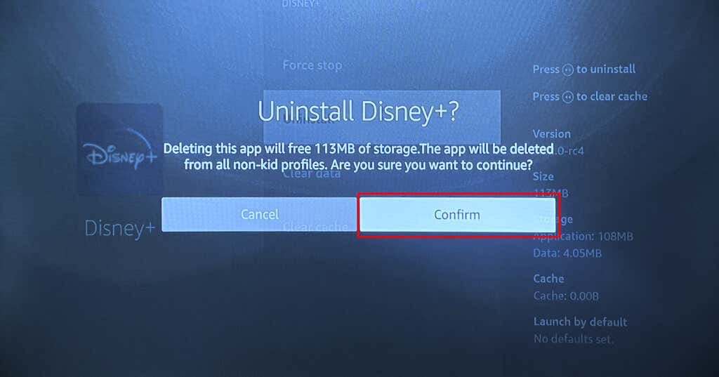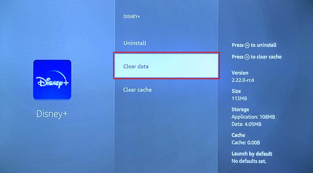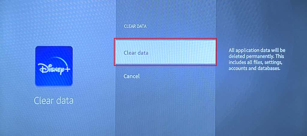 Note: Deleting Disney+ data removes the application’s settings, files, and account info from your Fire TV.
