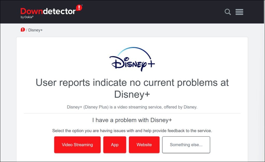 There’s likely an issue with Disney Plus servers if the streaming app doesn’t work on your Fire TV and other supported devices. Check the Disney+ status page on Downdetector for possible server downtime or outage.