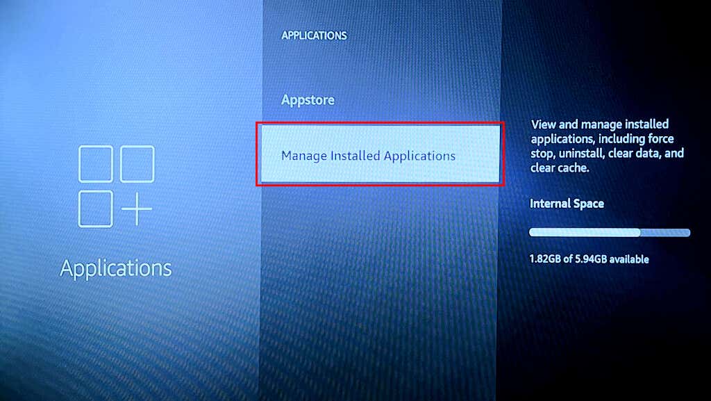 - Select Manage Installed Applications.