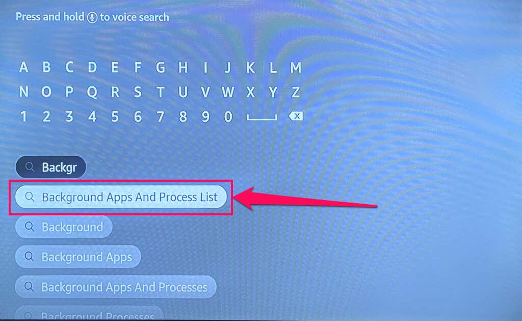 - Type background in the dialog box and select Background Apps And Process List in the suggested results.