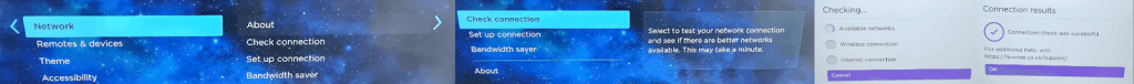To do that, press Home on your Roku remote, then scroll down and select Settings > Network > Check Connection. Your device will automatically start a connection check and let you know whether or not it has been successful. If your device isn’t connecting to the internet, you could try restarting your router to see if that resolves the connectivity issues.