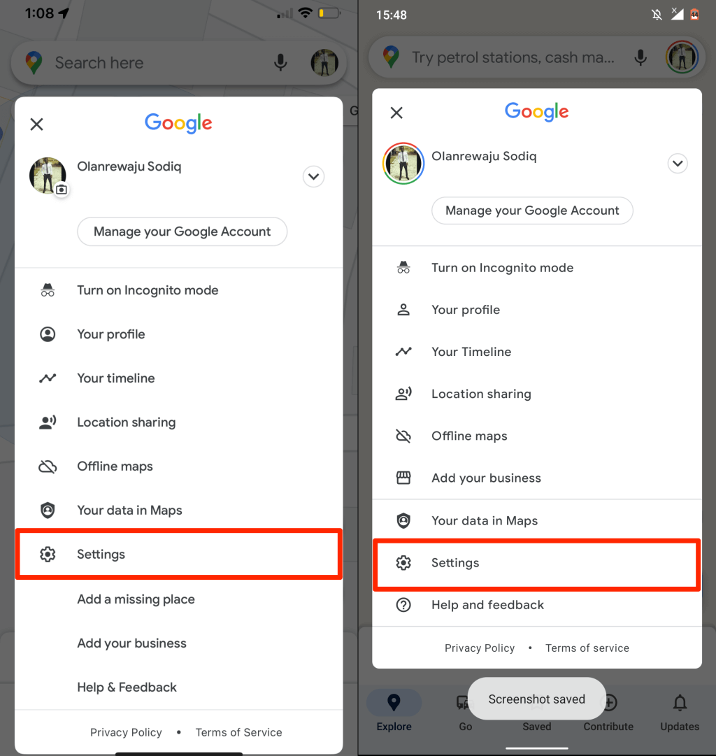 - Open Google Maps, tap your profile picture, and select Settings.