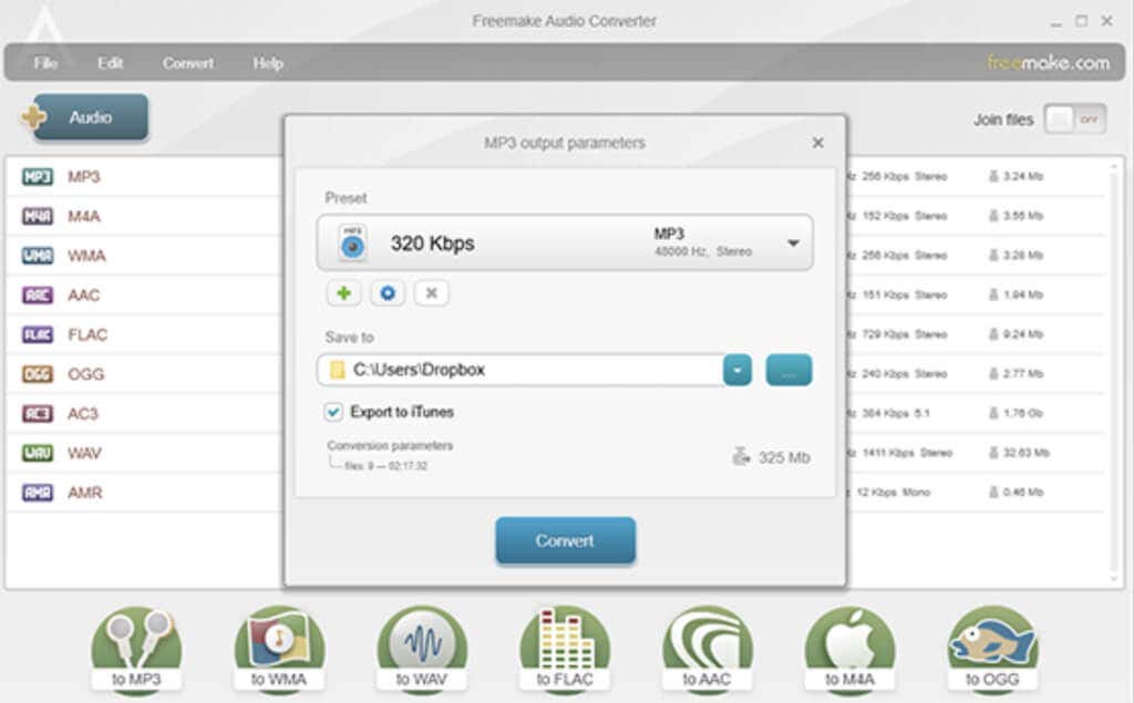 Besides typical conversions, this tool empowers users to combine files of different formats into a new audio file. Additionally, FreeMake can seamlessly sync with cloud storage services like Dropbox and Google Drive. So you can use it to automatically transfer newly converted audio files to your preferred cloud storage.