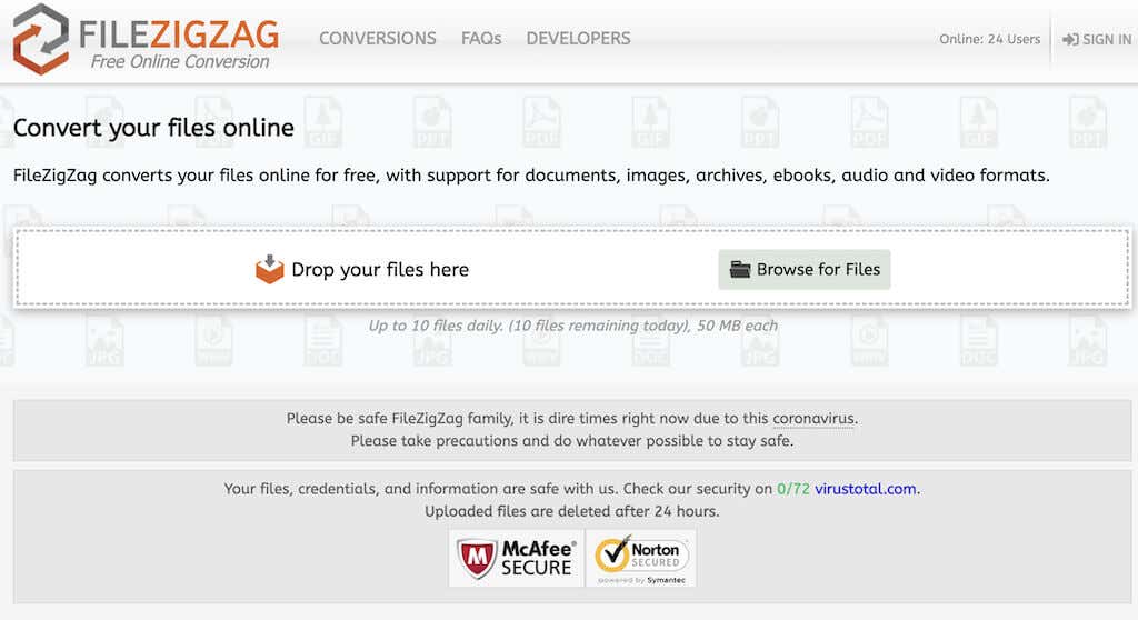 FileZigZag offers an online platform for audio file conversion, eliminating the need for software downloads. On the downside, you can’t use this app for offline audio conversion. FileZigZag supports various file formats and allows users to convert multiple files simultaneously up to 150 MB each.