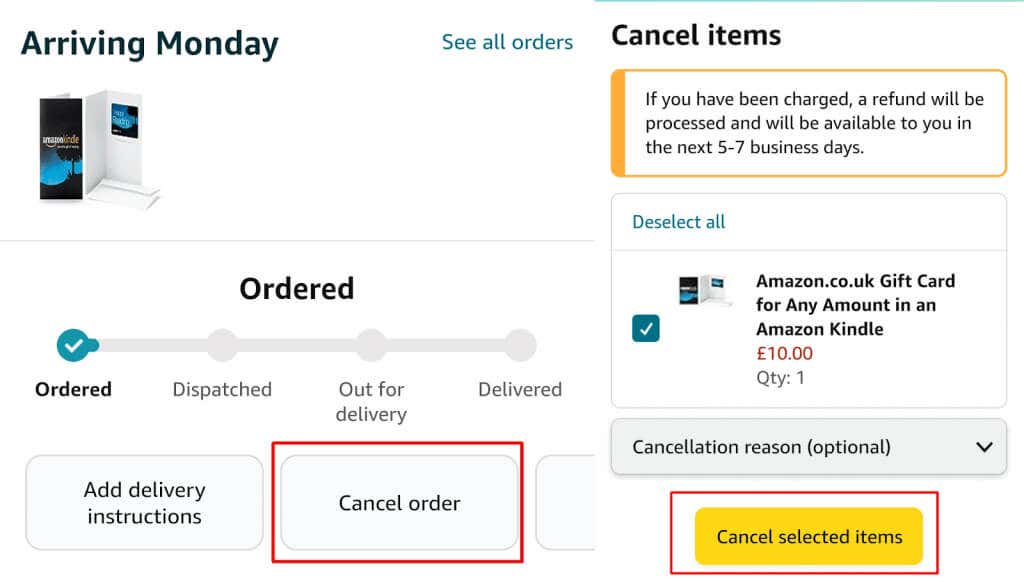 How to Cancel a Physical Gift Card Order in the Amazon App