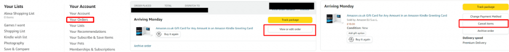 If you placed a gift card order by mistake or you’ve ordered a physical gift card and sent it to the wrong address, you might be able to cancel your order. The easiest way to see if you can do this is to go to your orders in your Amazon account. Here’s how to see if you can cancel Amazon gift cards for physical orders.