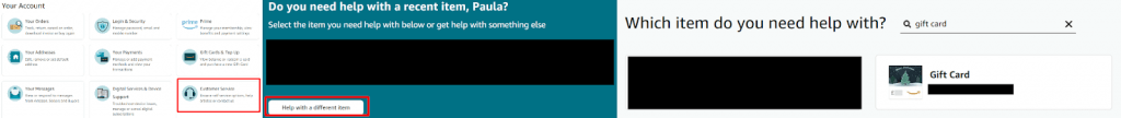 - Under Do you need help with a recent item, select your gift card order. If you don’t see your order, select Help with a different item, then select your order.