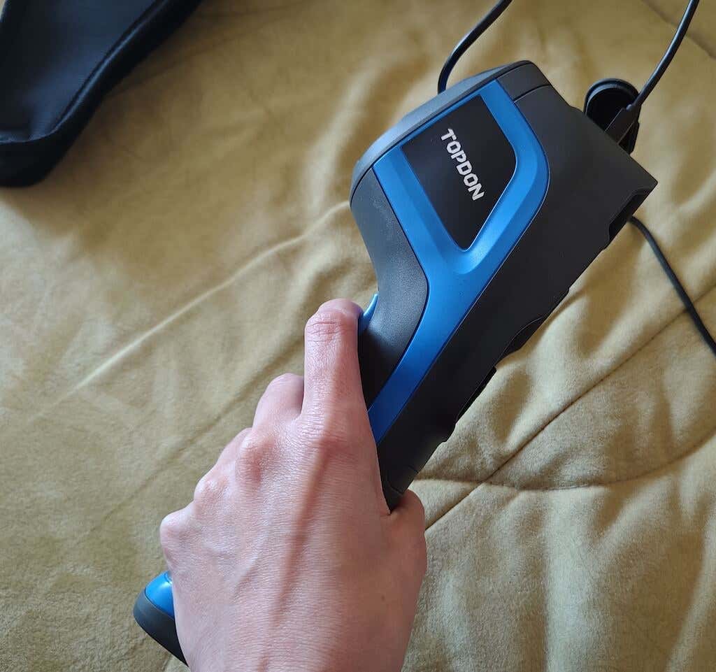 The TopDon TC004 thermal imaging camera is crafted to fit snugly in your hand, allowing for a comfortable grip during use. The control pad is conveniently placed for your thumb to rest on, ensuring easy access and seamless operation.