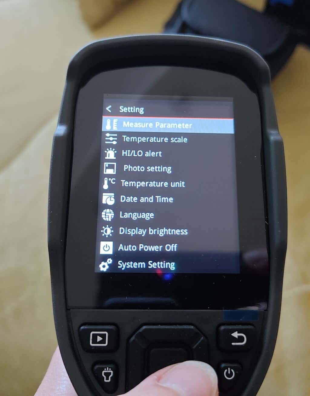 Zooming in on the controls, the central pad hosts a select button, conveniently positioned for effortless access, which makes for a user-friendly experience. The intuitive arrangement of controls ensures seamless operation, allowing you to capture the perfect thermal shot with ease.