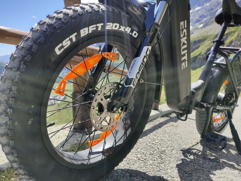 It’s clear that Eskute paid a lot of attention to rider comfort and control. The Eskute Star comes with front suspension and the 20″ x 4.0″ fat tires which offer impressive traction and stability across different riding conditions. Hydraulic disc brakes ensure reliable and responsive stopping power.