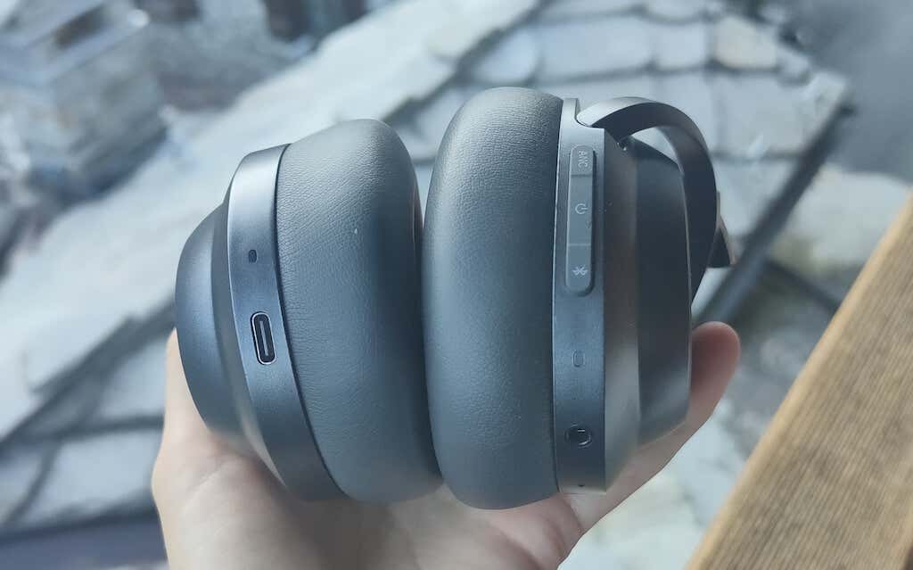 On the right side of the headphones, you’ll also find some physical buttons. There’s one for noise cancellation, power, and syncing with your devices via Bluetooth.