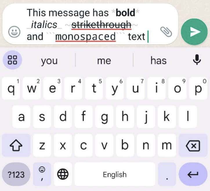 Most messaging apps only allow you to send plain text. Unlike them, WhatsApp offers various formatting options to make your text messages more appealing. To diversify your WhatsApp texts, you can use bold text, italic text, strikethrough text, and monospaced text.