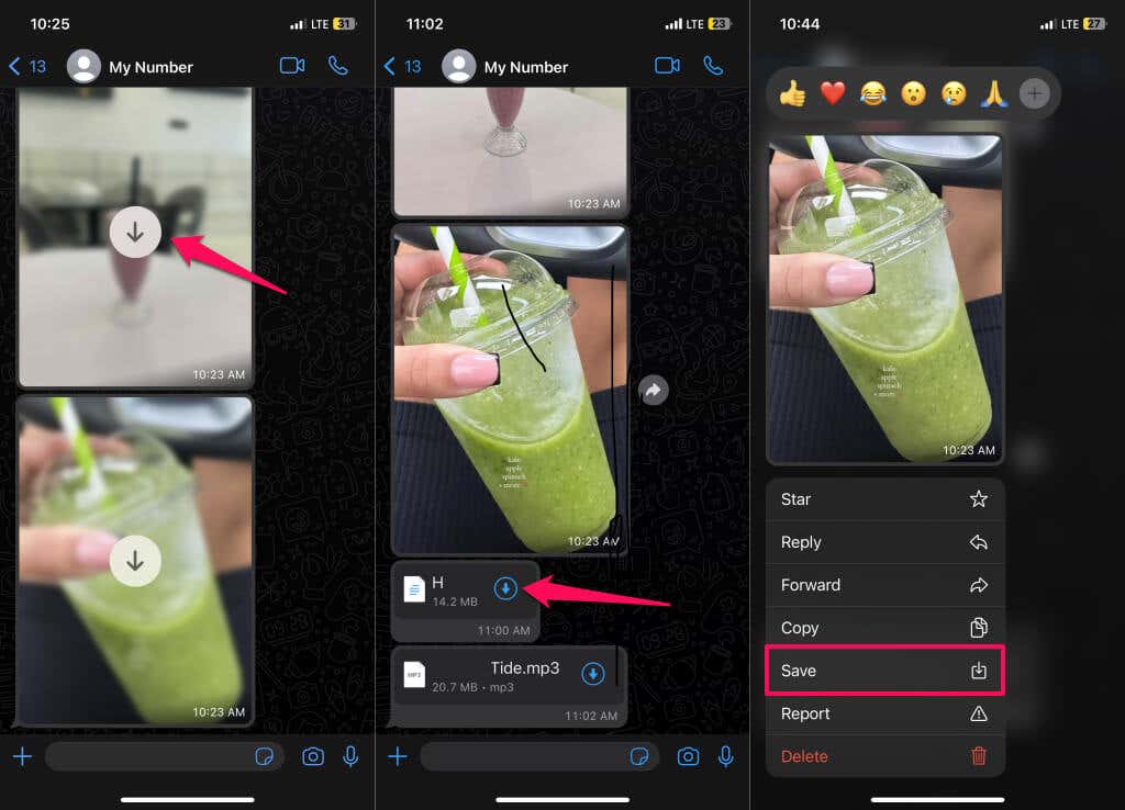 - When you receive a media file in WhatsApp, tap the Download icon to view the file’s content.