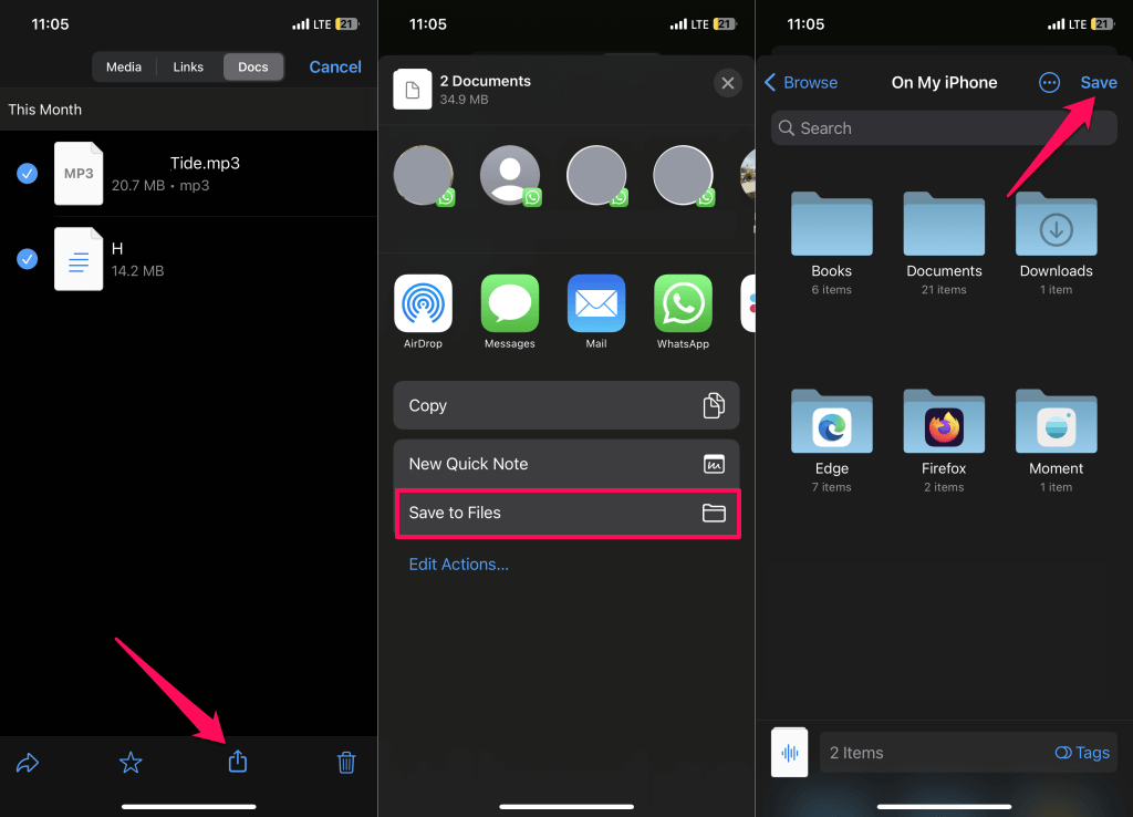 - Afterward, tap and hold the file and select Save. Check steps #3 and #4 to see how to save multiple files simultaneously.