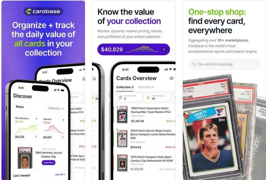 Another useful app for sports card collectors is Cardbase. You can add cards to your in-app collection by either searching for it, scanning it, or adding a full set of cards you may own. Cardbase also allows you to browse cards to add them to your Favorites, allowing you to find cards you may want to buy next. If there’s a card you’re really interested in, you can add it to your Watchlist, which allows you to track the card’s availability and value.