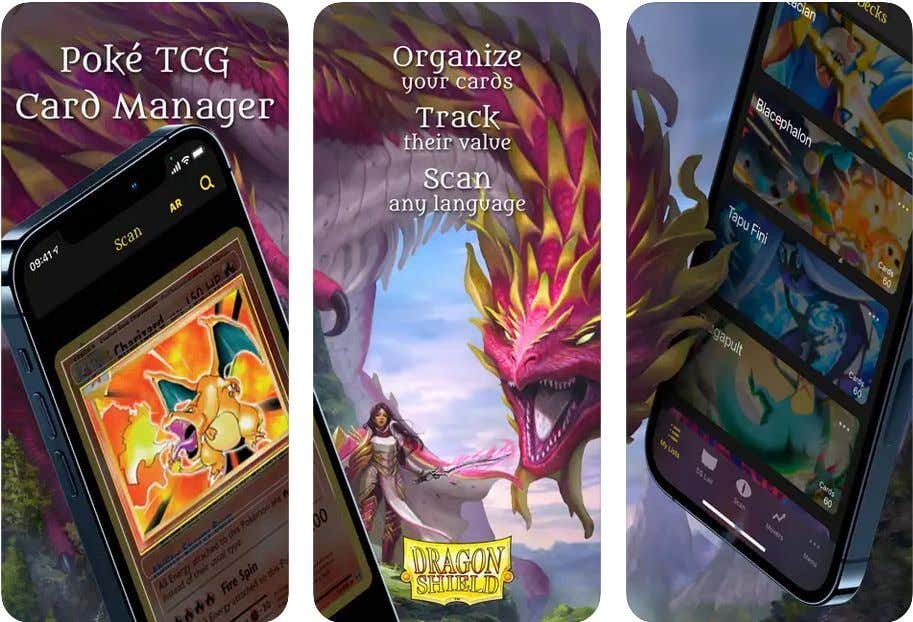 This app from Dragon Shield allows you to scan in your Pokemon cards and organize your collection easily. You can sort cards into decks, create a wishlist and trade list, and see all your cards in your inventory, which can be sorted into folders. In your inventory, you can also see the value of your cards.