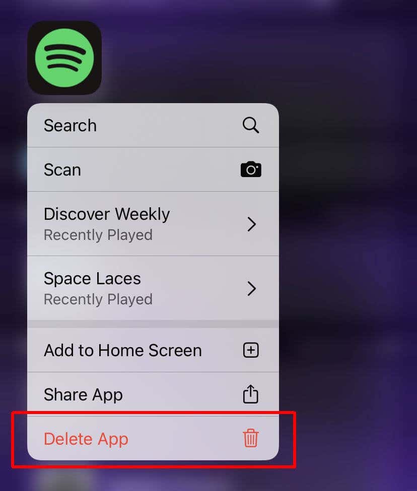 - On your home screen, tap and hold on the Spotify app icon until it begins to move.
