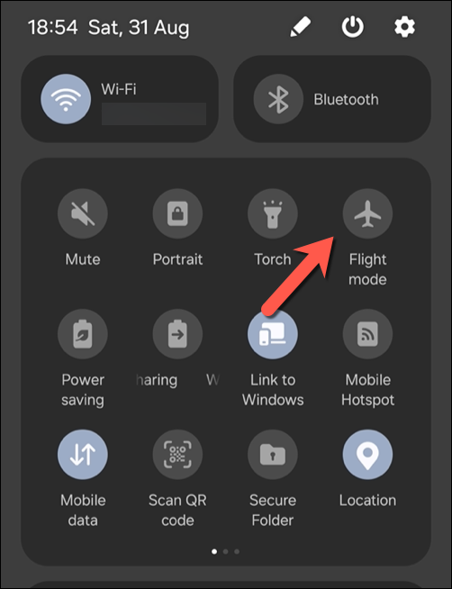 This is a quick and easy fix to resolve if this happens. Swipe down the top of your screen to access your device’s quick settings panel, look for the airplane mode icon, and then tap it to switch it off. You can also find it in your phone’s settings menu.