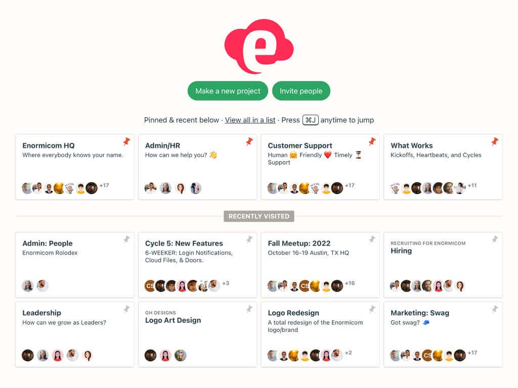 - Projects. Create individual projects with their own set of tasks, discussions, and attached files. These serve as the central hub for collaboration in Basecamp.