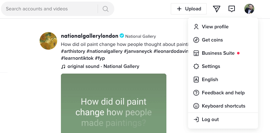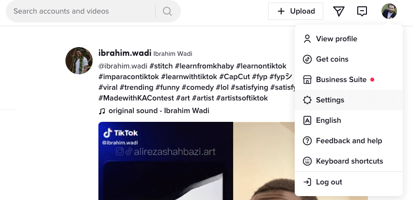 - Select your TikTok account icon in the top-right corner of the screen and then select View Profile.