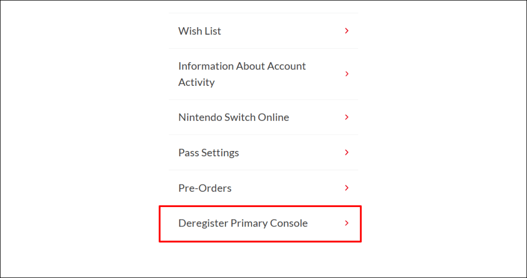 - Select your missing Nintendo switch and choose Deregister to proceed.