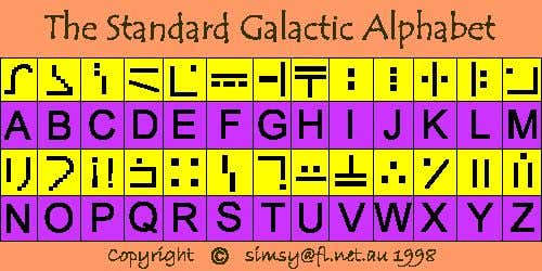 But it is not a language created by Minecraft – it is from the Commander Keen game series by Microsoft. The Standard Galactic Alphabet (SGA) was created to make various texts and signs look more alien in the game.