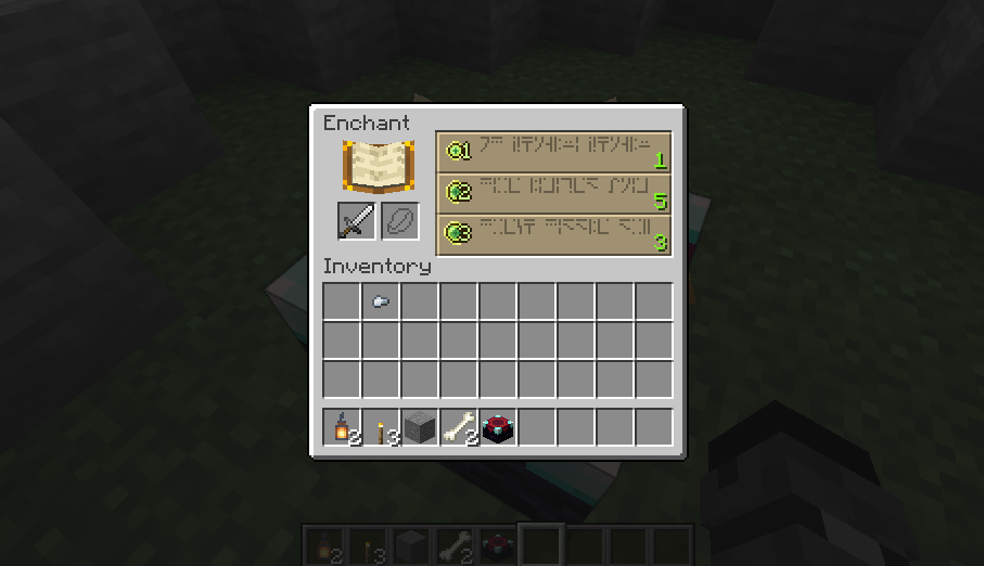 And even that’s a small subsection – for the most part, the enchantment table sports a random smattering of words that individually translate to something but are not meaningful as a sentence.