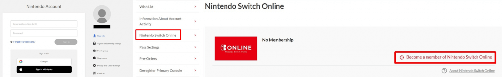 - From the menu on the left side of your screen, select Nintendo Switch Online.