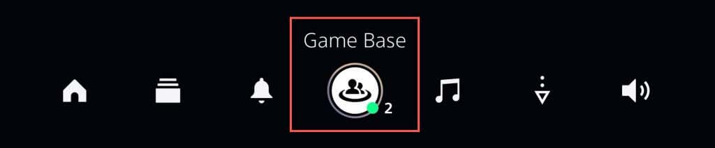 - Press the PS button on the PS5 controller and select Game Base.